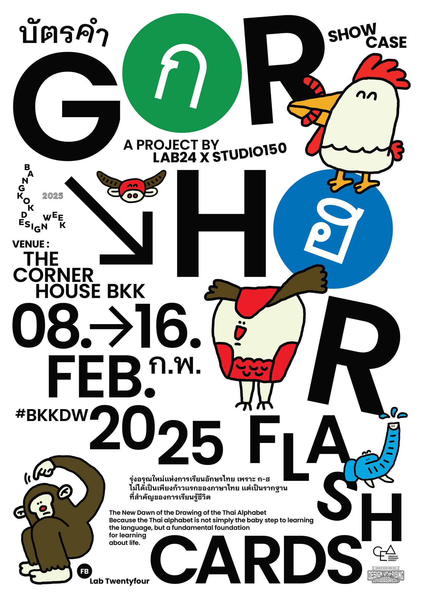 An educational exhibition that reimagines the Thai alphabet as more than a starting point for language, but a foundation for understanding life. Designed for children, the project uses interactive and motion-based media to enhance recognition, memory, and appreciation of the unique forms of Thai consonants.